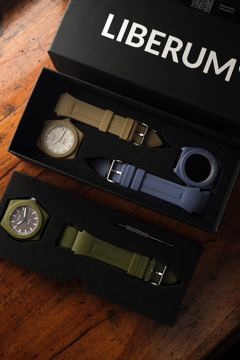 This brand was inspired by my son Mattia Libero, who was caught in the summer of 2021 coloring with different colors a watch he found inside a drawer during a summer day. When I saw him and asked for an explanation I could see he felt half guilty, but was also half proud of himself. He said to me while laughing: “but why can’t you change when you want the color to leave those things under the glass anyway?” That’s where the idea clicked. Part of the name itself evolved into Latin form giving birth to LIBERUM® brand.